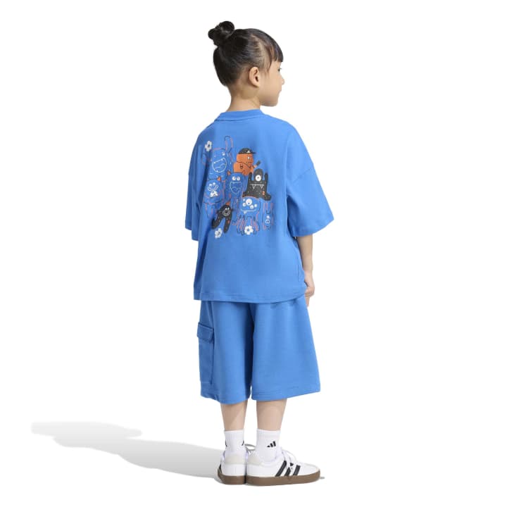 Κατασκευασμένο με γνώμονα την άνεση, η oversize γραμμή παρέχει ελευθερία κινήσεων στα δραστήρια παιδιά. Η μπλούζα από single jersey και το κάτω μέρος από French terry προσφέρουν μαλακή, απαλή και ζεστή αίσθηση, ιδανική για παιχνίδι ή χαλάρωση. Η τσέπη με patch στο σορτς προσθέτει μια πρακτική πινελιά, ενώ το τύπωμα του ποδοσφαιρικού τέρατος στην πλάτη και τα αυτοκόλλητα στην ετικέτα χαρίζουν μια διασκεδαστική, σπορ αίσθηση.