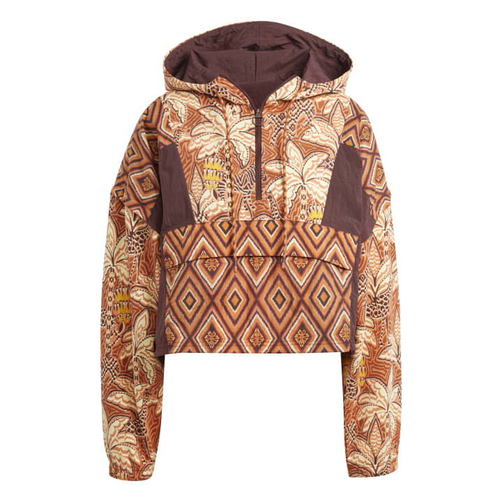 Η αναγραφόμενη τιμή προϊόντος ισχύει μόνο για ηλεκτρονικές αγορές.Αυτή η adidas x FARM Rio ζακέτα προπόνησης σου χαρίζει στιλ στο γυμναστήριο αλλά και τη βόλτα σου. Εμπνευσμένη από τα μοτίβα της ζούγκλας, αυτή η φαρδιά μπλούζα έχει εντυπωσιακό leopard print και έντονα χρώματα για δυναμικό look. Αυτό το track jacket έχει μαλακό interlock ύφασμα και ευρύχωρη κουκούλα για άνεση στην προπόνηση και τις βραδινές σου εξόδους.