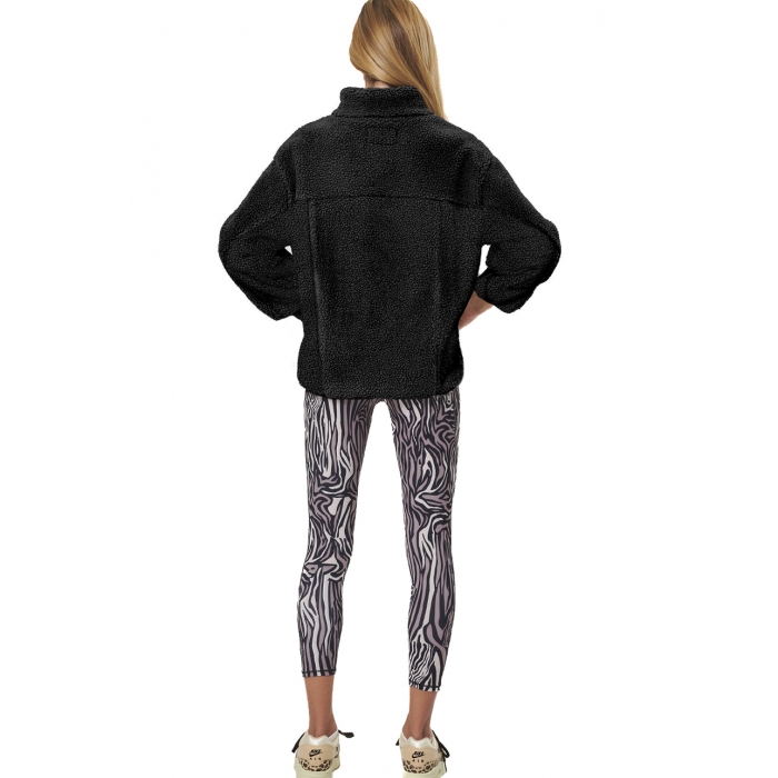Body Action Faux Sheepskin Jacket Γυναικεία Ζακέτα Προβατάκι Μαύρη