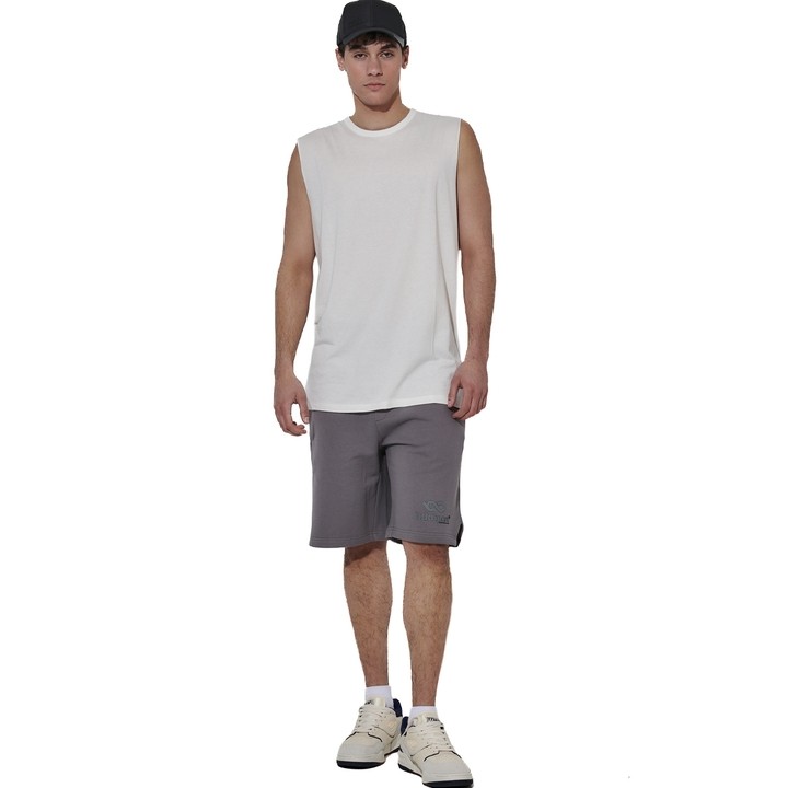 Ανδρική κλασική βερμούδα Εσωτερική επένδυση french terry Φαρδιά ελαστική μέση με κορδόνι 2 πλαϊνές τσέπες με φερμουάρ 1 τσέπη με
