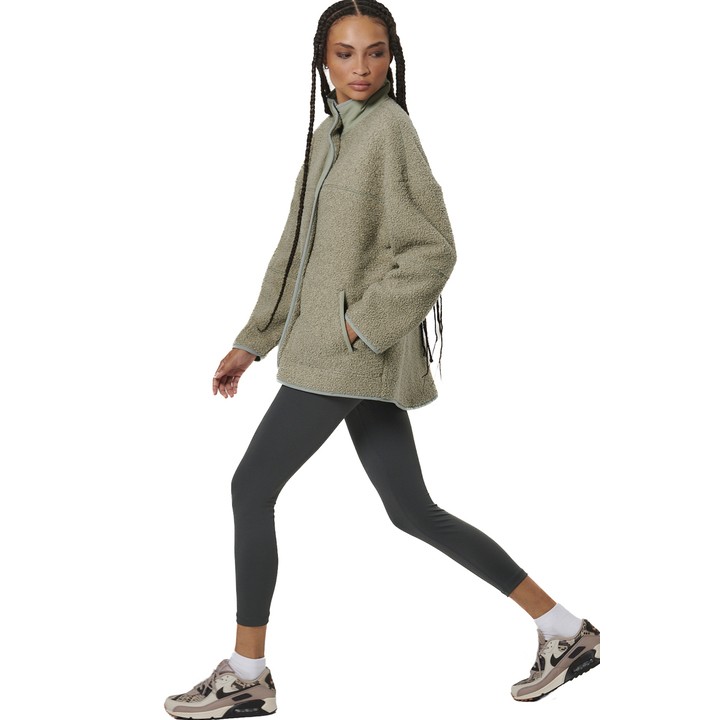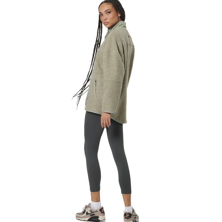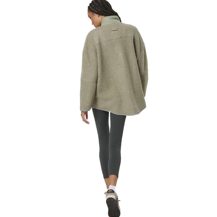 Body Action Oversize Boucle-Fleece Jacket Fog Green Γυναικεία Ζακέτα Προβατάκι Λαδί
