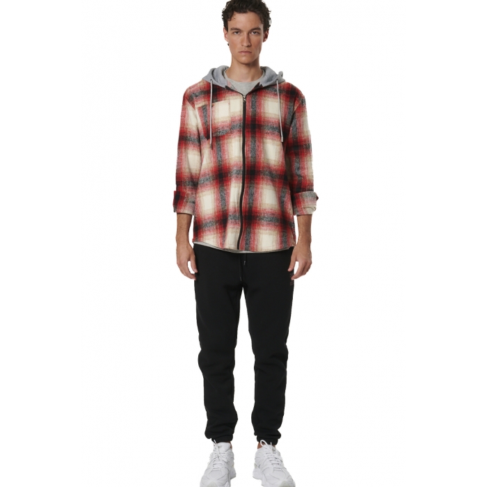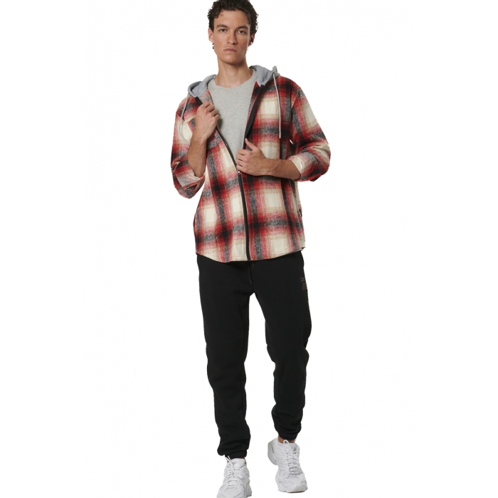 Ανδρικό fleece πουκάμισο καρό με φερμουάρ και κουκούλα με κορδόνι