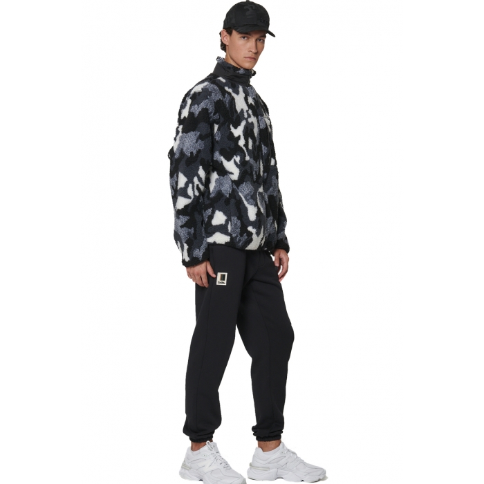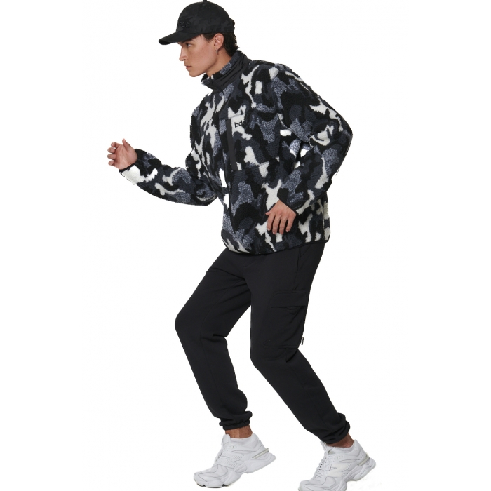 Body Action Printed Sherpa-Fleece Jacket Camo Black Grey Ανδρική Ζακέτα Προβατάκι Μαύρη / Γκρι