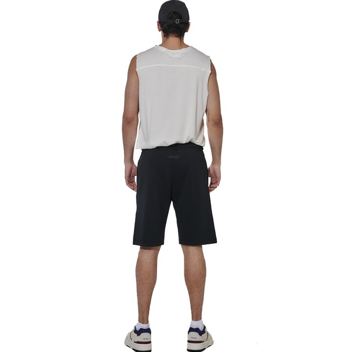 Ανδρική βερμούδα με εσωτερική επένδυση french terry Φαρδιά ελαστική μέση με κορδόνι Μικρά πλαϊνά κοψίματα στο τελείωμα 2 πλαϊνές τσέπες