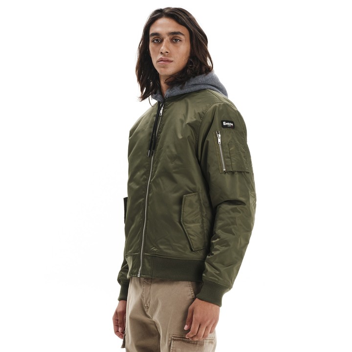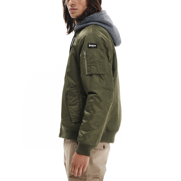 Η αναγραφόμενη τιμή προϊόντος ισχύει μόνο για ηλεκτρονικές αγορές.Αυτό το EMERSON flight μπουφάν συνδυάζει κλασικό στυλ με καθημερινή άνεση. Διαθέτει αποσπώμενη κουκούλα από jersey ύφασμα και πολλαπλές τσέπες για να κρατάς τα απαραίτητα οργανωμένα και ασφαλή. Το πλεκτό λάστιχο στις μανσέτες και το τελείωμα σταματάει τον κρύο αέρα. Φόρεσέ το πάνω από το αγαπημένο σου φούτερ EMERSON για ένα casual χειμερινό look.