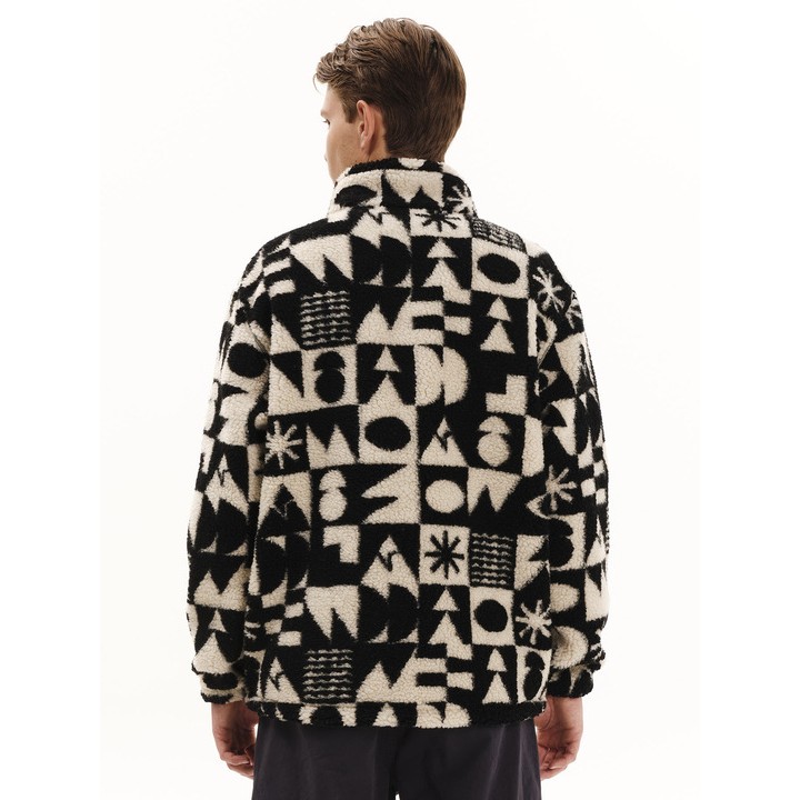 Emerson Full Zip Sherpa Fleece Ανδρική Ζακέτα Προβατάκι Μαύρη / Εκρού