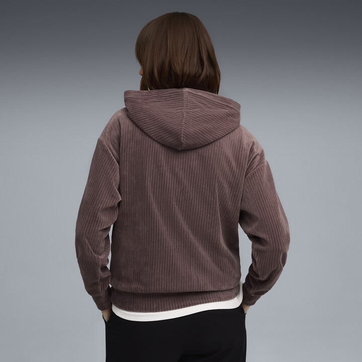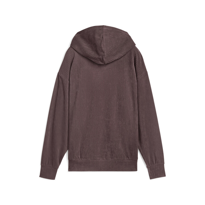 Puma Ess Elevated Comfort Velour Rib Hoodie Γυναικεία Φούτερ Μπλούζα Βελούδο Σάπιο Μήλο