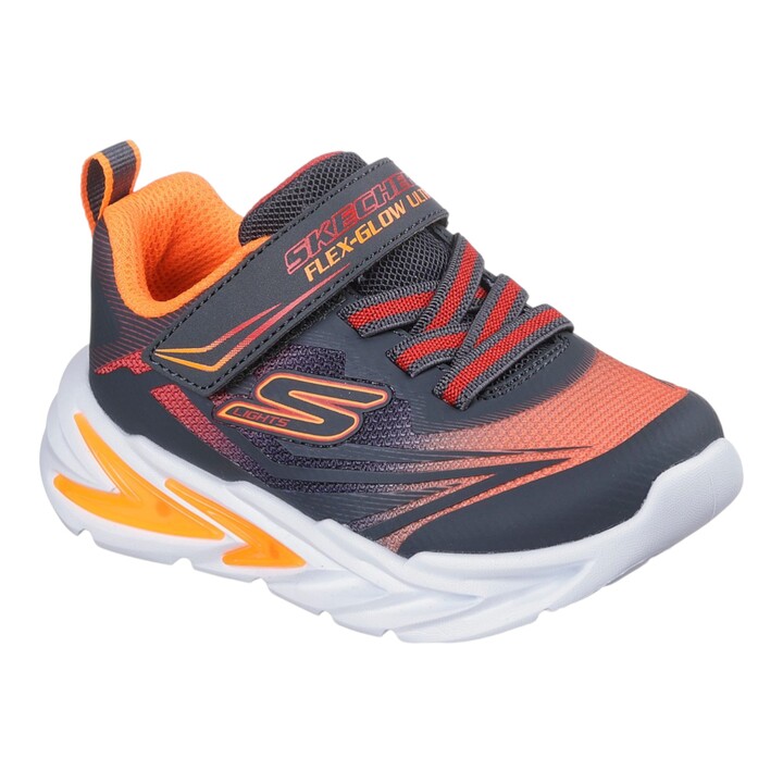 Δώσε ώθηση στη μέρα τους με τη φωτεινή διασκέδαση των Skechers S-Lights®: Flex-Glow Ultra. Αυτό το πολύχρωμο αθλητικό παπούτσι διαθέτει επάνω μέρος από πλέγμα mesh σε χρώματα ombré με συνθετικές επικαλύψεις, σταθερά ελαστικά κορδόνια και Adaptive Closure, καθώς και μια μεσόσολα με τεχνολογικές λεπτομέρειες που φωτίζει.